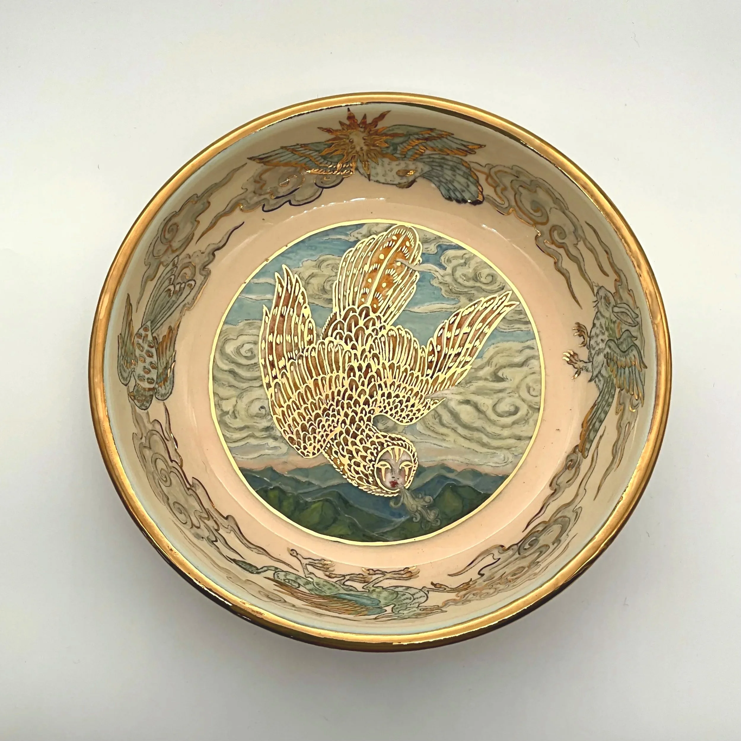 Terracotta, underglaze, glaze, gold lustre 200mm x 110mm x 60mm variable